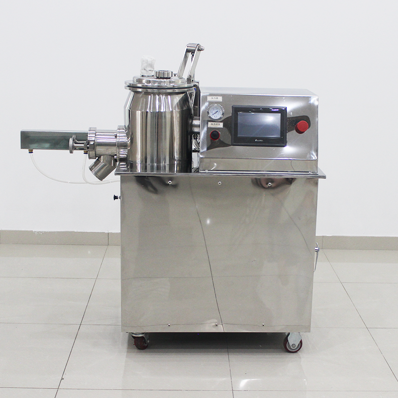 粉體物料與粘合劑在圓筒形容器中由底部混合漿充分混合成濕潤材料,然后由側置的高速粉碎槳切割成均勻的濕顆粒。制粒時間短,節能。主藥與輔料差異大時,仍能達到均勻結合,無分層現象。