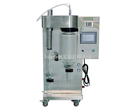 (3)當干燥室進口溫度達到目180℃~220℃時,開啟離心噴頭,當噴頭達到最高轉速時,開啟進料泵,加入料液,進料量應由小到大,否則將產生粘壁現象,直到調節(jié)到適當量。料液的濃度應根據物料干燥的性質溫度來配制,以保證干燥后成品有良好的流動性;