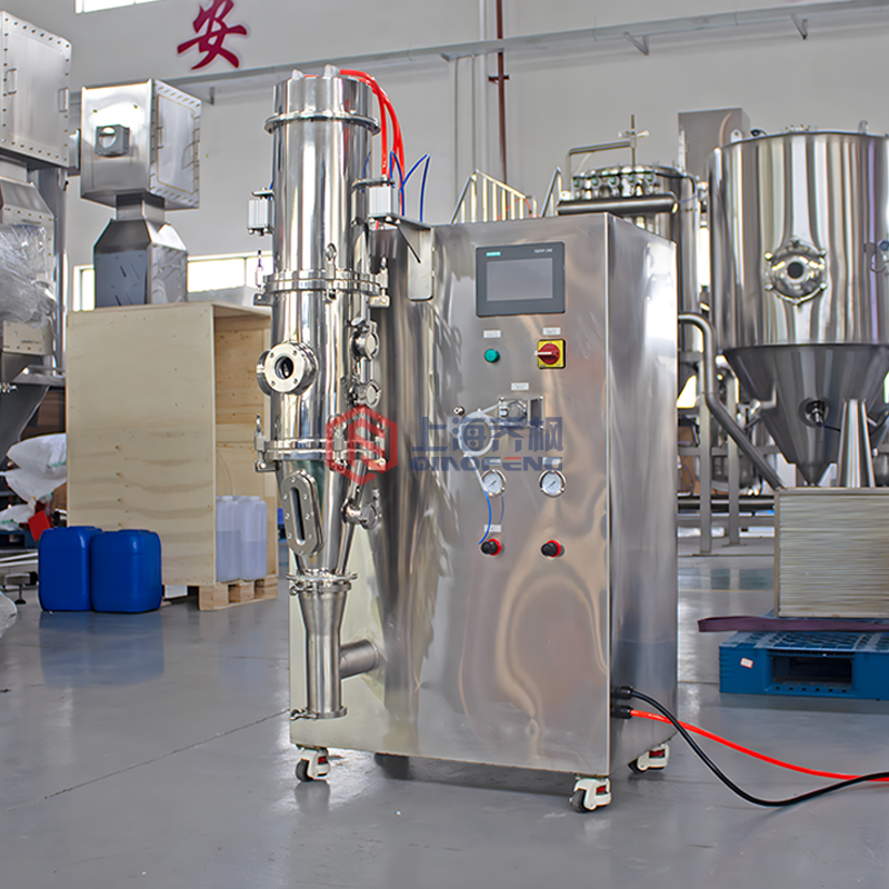 沸騰制粒機 小型實驗用沸騰制粒包衣一體機 (微型沸騰制粒機)是我司研制的微型多功能制粒包衣設備,設備體積小,物料處理量小,備料方便,可用于各種顆粒和微丸的混合、干燥、制粒和包衣功能,設備還帶有噴霧干燥功能,滿足高校、科研院所和企業研發單位科研人員小樣制備和中試的需要,目前在國內有近500多所高校研究單位采用了我司的噴霧造粒設備。