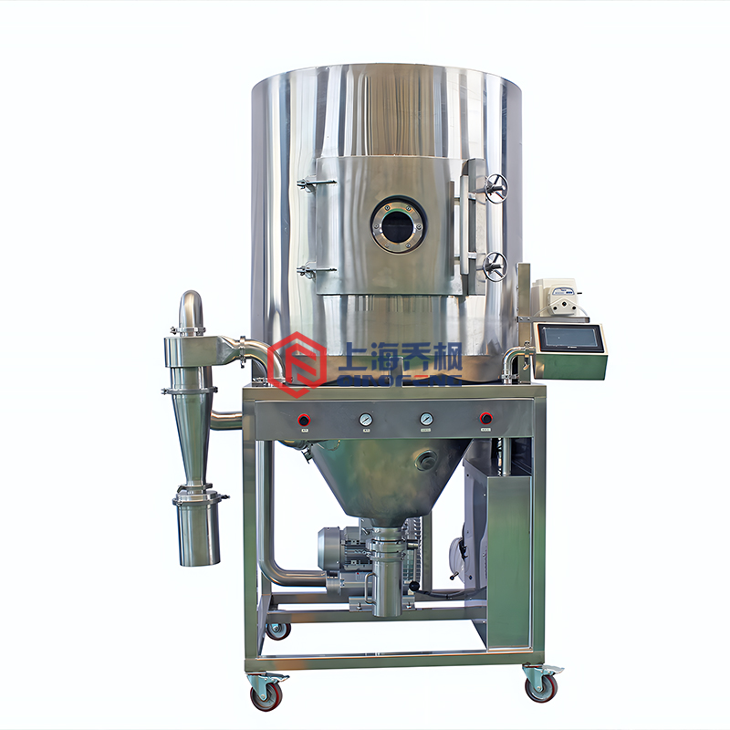 造粒噴霧干燥機是上海喬楓自主研發的一套造粒噴霧干燥機的。QFN-ZL系列造粒噴霧干燥機(喬楓)專門的雙氣送液造粒噴頭,國內一大創新,直接將均勻的球形霧滴通過均勻的熱量變成顆粒。