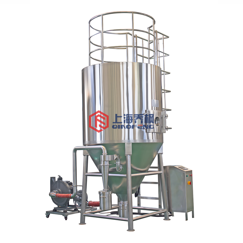 設(shè)備主要由:送料系統(tǒng)、加熱系統(tǒng)、干風(fēng)裝置、霧化系統(tǒng)、噴霧干燥系統(tǒng)、產(chǎn)品回收系統(tǒng)組成。