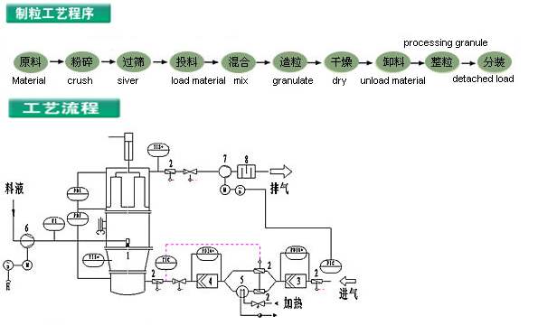 沸騰制粒干燥機(jī)利用換熱器加熱的空氣形成熱空氣,通過(guò)閥板將熱空氣分配到主機(jī)中。濕物料從進(jìn)料機(jī)進(jìn)入干燥機(jī)。由于氣壓的作用,物料在干燥器中形成沸騰狀態(tài),與熱風(fēng)廣泛接觸,在較短的時(shí)間內(nèi)完成物料的干燥。沸騰制粒干燥機(jī)是一種干燥設(shè)備,又稱流化床。一般由加熱器、沸騰床主機(jī)、旋風(fēng)分離器、袋式除塵器、引風(fēng)機(jī)、操作臺(tái)等組成。根據(jù)物料性質(zhì)的不同,可根據(jù)需要選用旋風(fēng)分離器或袋式除塵器。沸騰干燥機(jī)提高了流動(dòng)性,減少了粉末造粒飛塵;通過(guò)粉末造粒提高了溶解性;在一臺(tái)機(jī)器中混合、造粒、干燥完成一步造粒;使用抗靜電濾布,設(shè)備安全運(yùn)行;設(shè)置泄壓孔,一旦發(fā)生爆炸,設(shè)備人員不受傷害;設(shè)備無(wú)死角,裝卸料輕便快捷,沖洗干燥。凈,符合GMP規(guī)范。